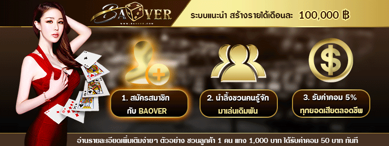 BaOver บาคาร่าออนไลน์ ฝาก-ถอน ระบบอัติโนมัติ เพียง 15 วินาที เท่านั้น!! แนะนำเพื่อนได้ค่าคอม 5.00%